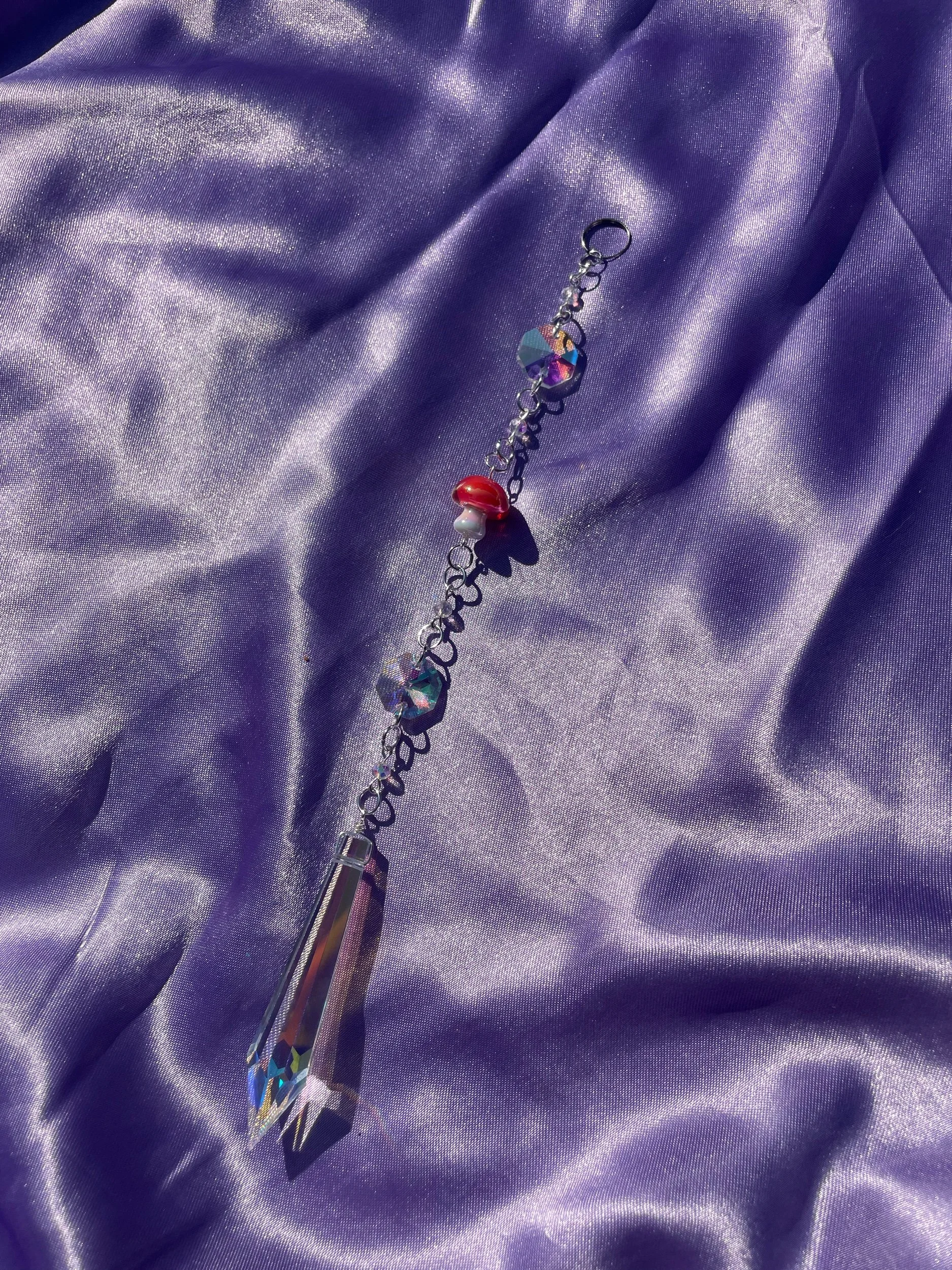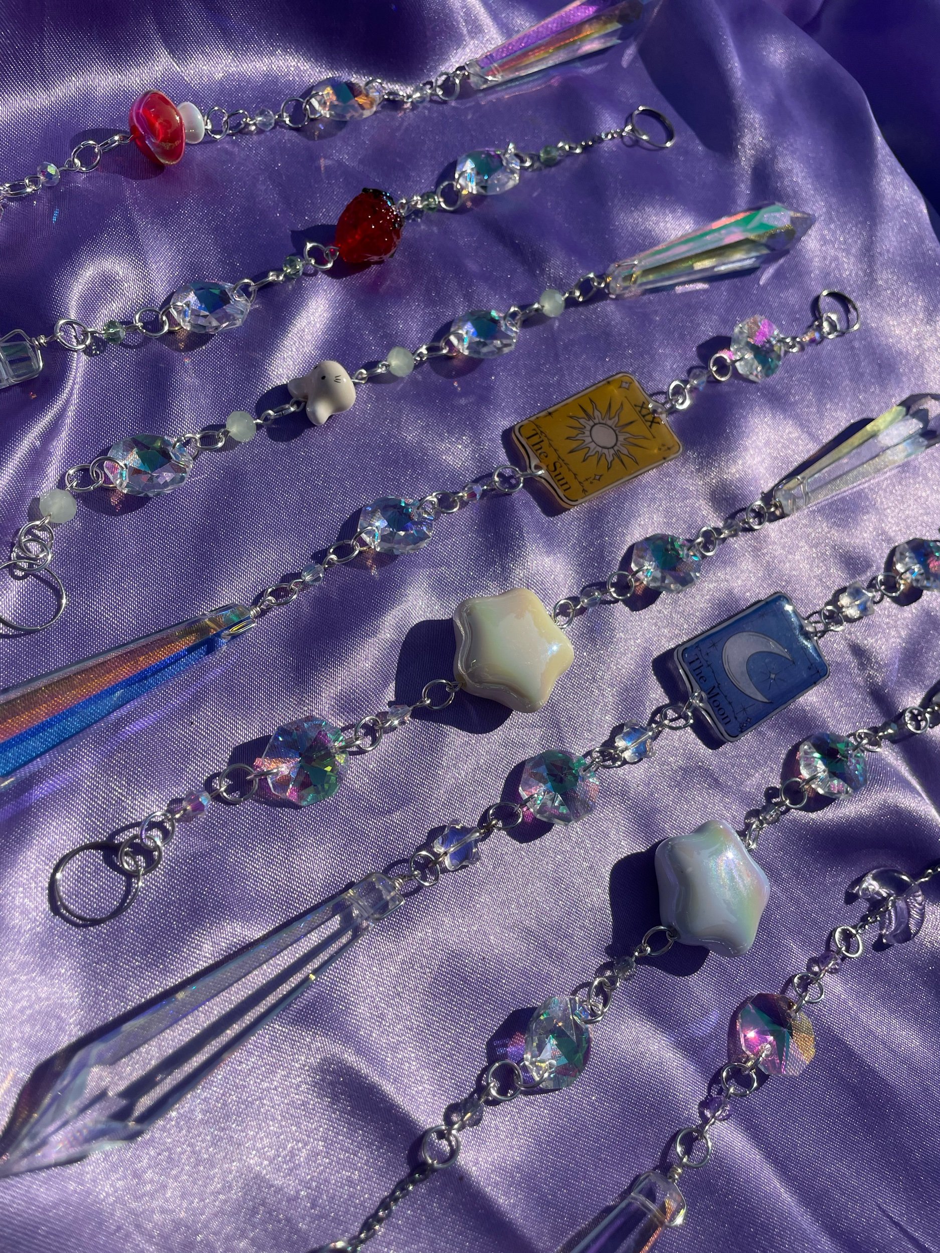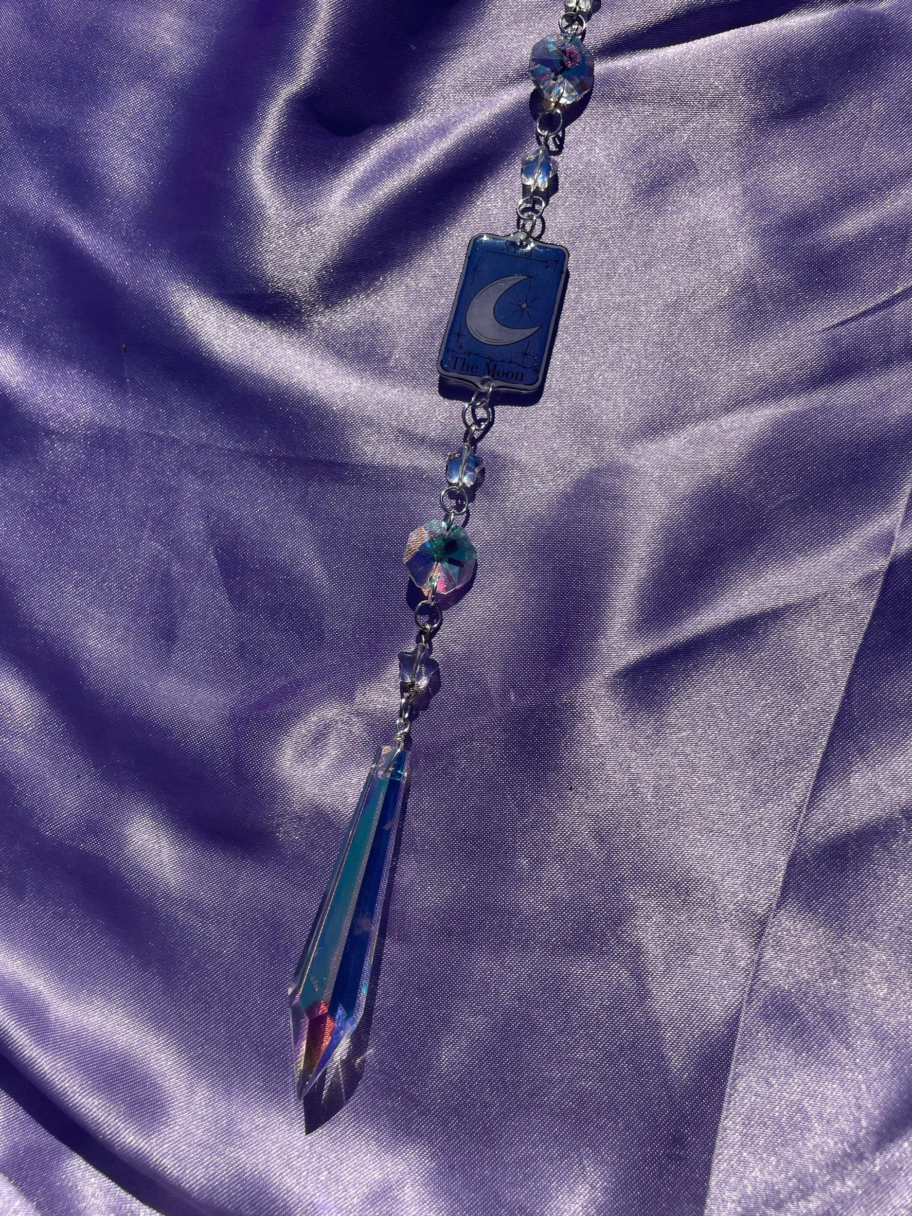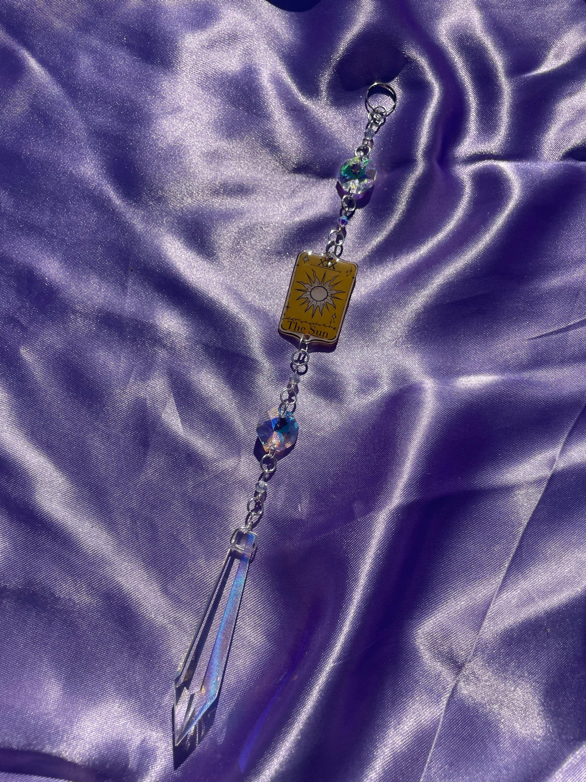 Shop › Sun catchers Image 1 of 5 Image 2 of 5 Image 3 of 5 Image 4 of 5 Image 5 of 5 Sun catchers $25.00 Crystal sun catchers, hang in your window to make rainbows in your space Design: Sun tarot card Moon tarot card Mushroom Quantity: Add To Cart Added! Crystal sun catchers, hang in your window to make rainbows in your space