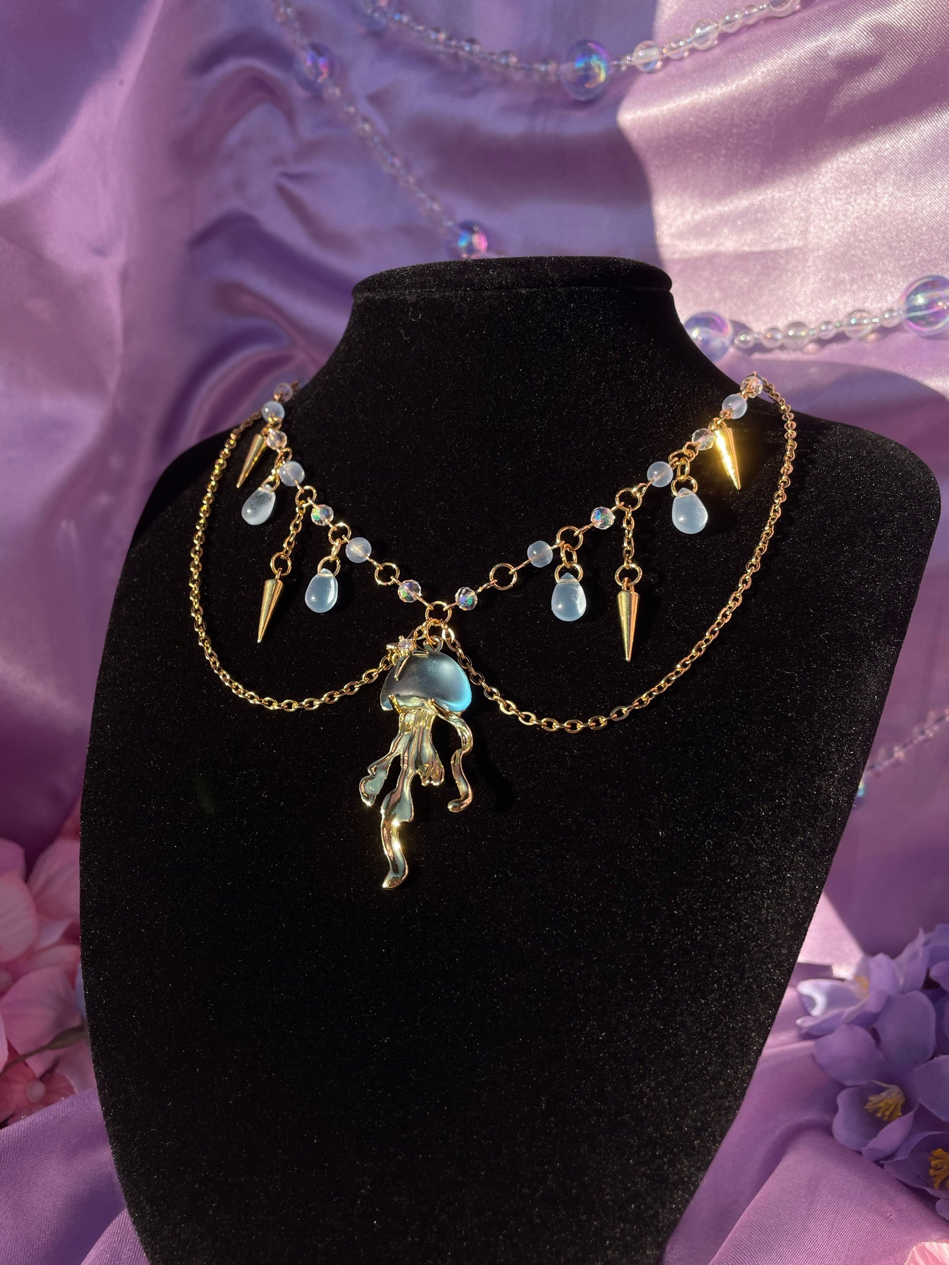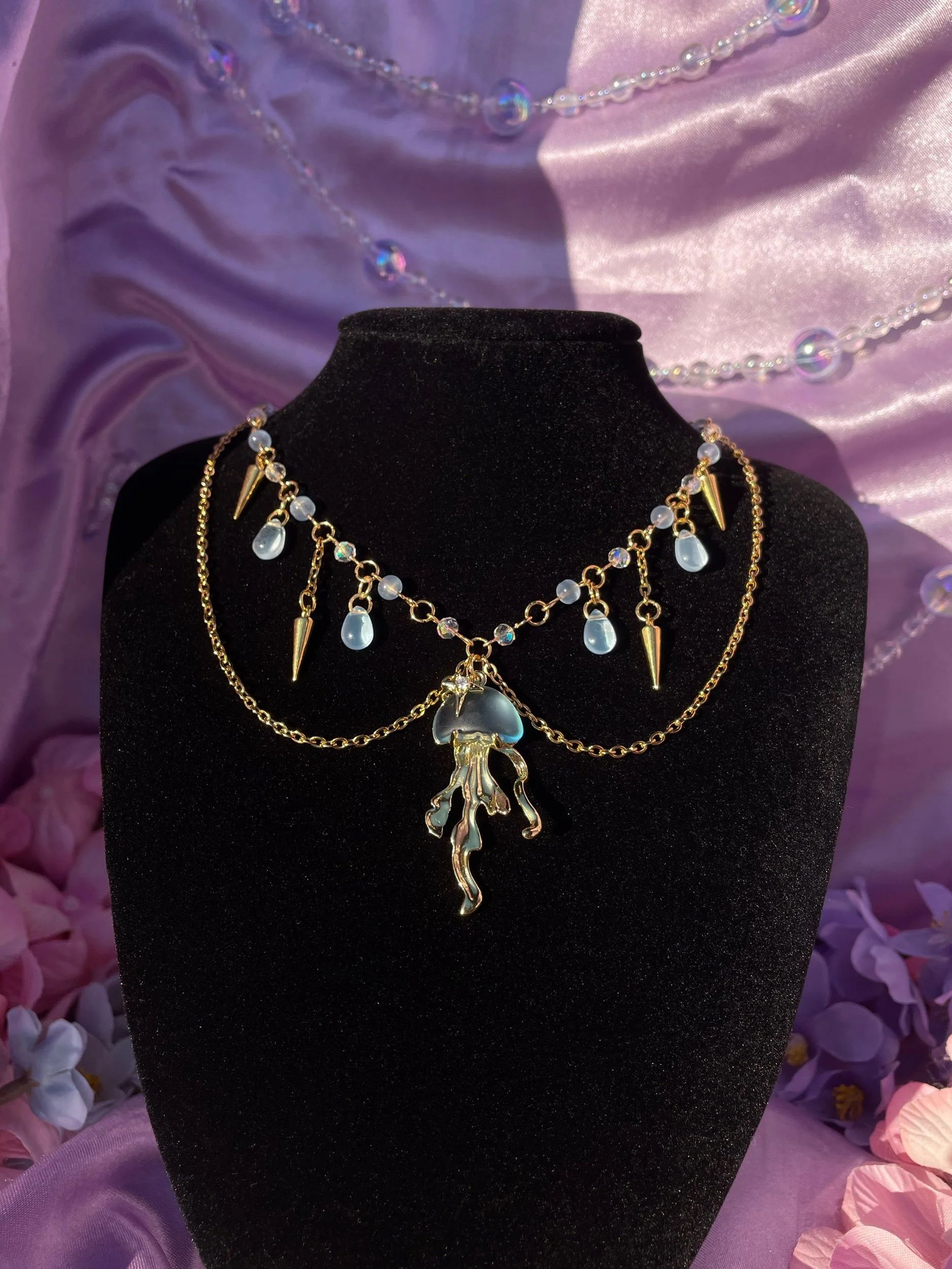 Gold jelly fish necklace